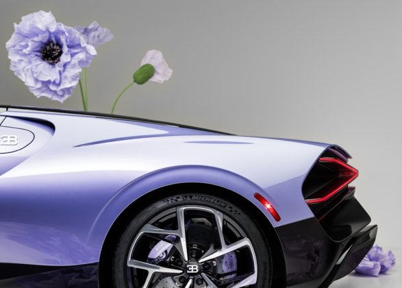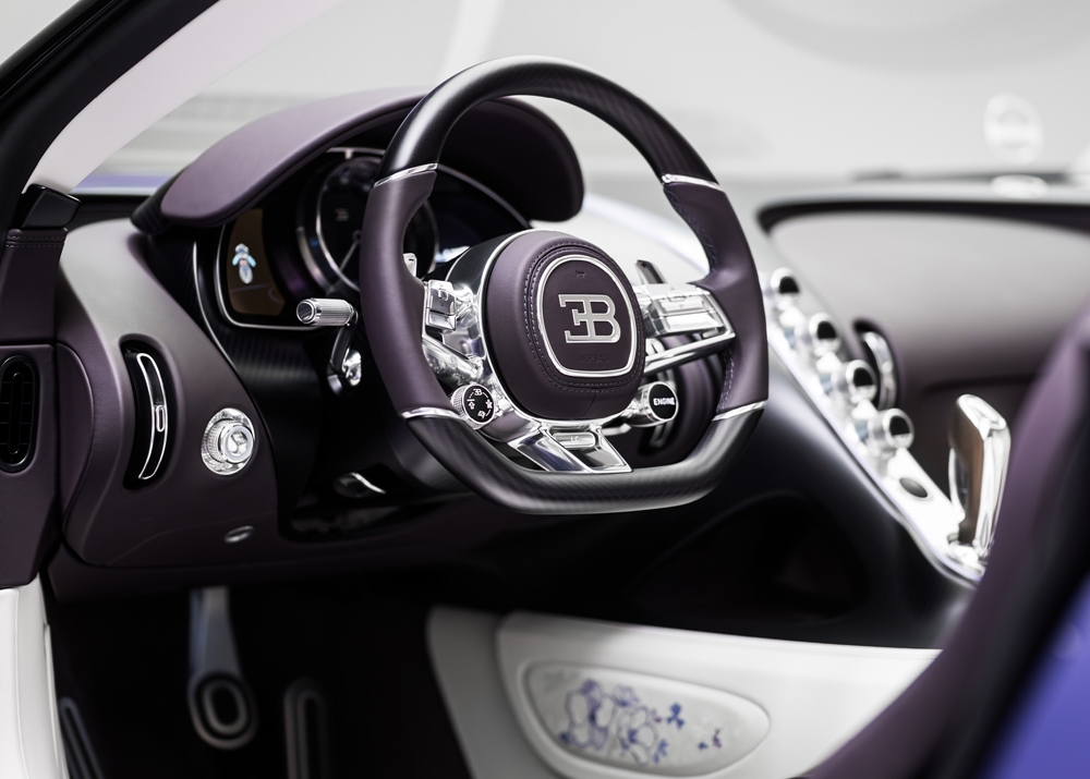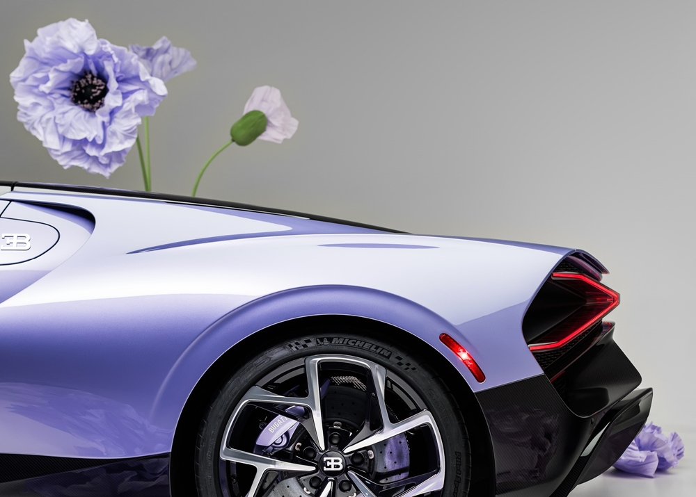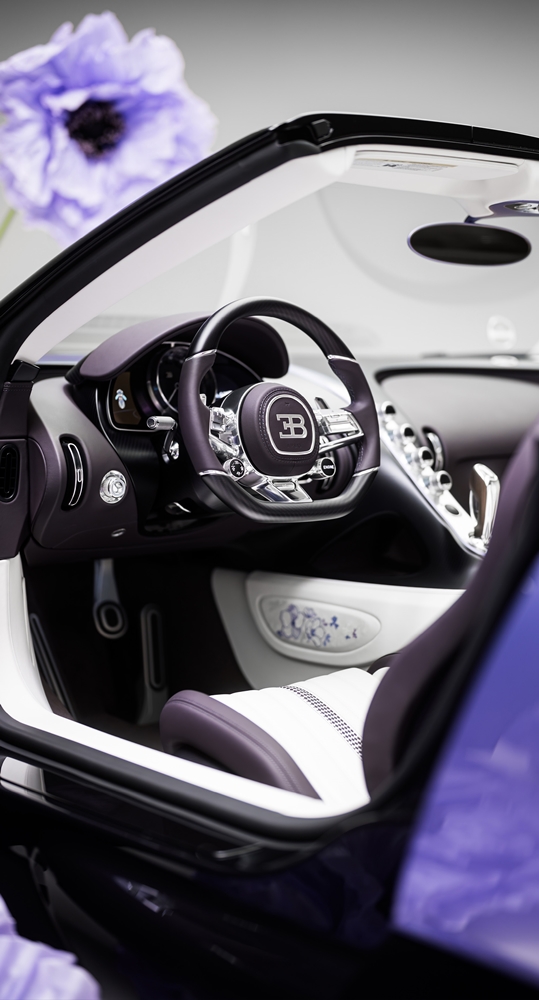 Pereka Bugatti mengambil inspirasi daripada ladang lavender di Provence, taman-taman di Paris, serta fabrik yang digunakan dalam fesyen Haute Couture.