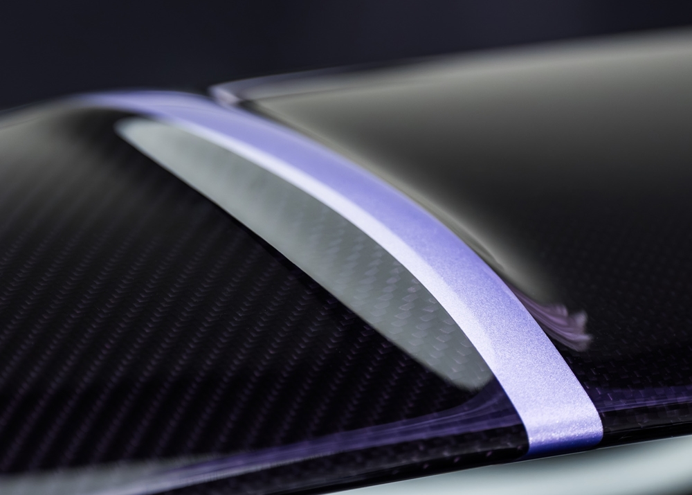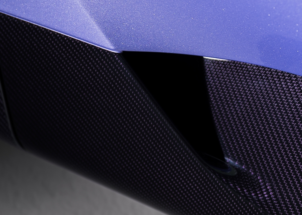 Bahagian bawah badan pula menggunakan anyaman Violet Carbon terdedah yang diberikan tona ungu pelengkap untuk memberikan kesan kontras pada reka bentuk keseluruhan.