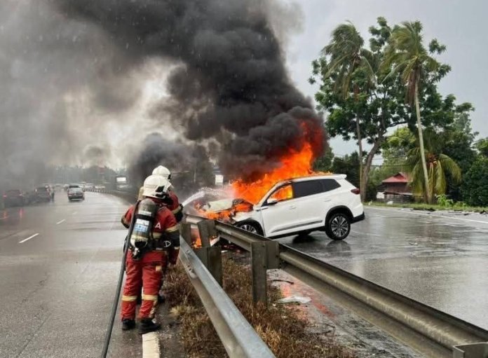 “Anggota yang tiba di lokasi menjalankan kerja pemadaman ke atas kenderaan yang terbakar menggunakan satu aliran salur bantu mula dengan sumber air daripada tangki jentera sehingga kebakaran berjaya dipadamkan sepenuhnya,” katanya.