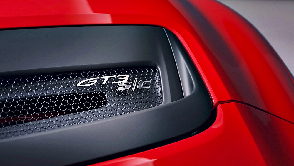 Logo GT3 S/C disulam pada bahagian tengah kemasan dinding belakang.