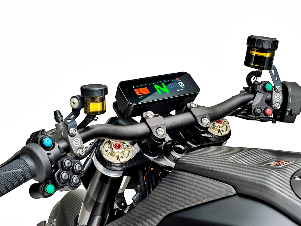 Sistem elektronik pada versi Track ini telah dikurangkan secara sengaja supaya penunggang hanya menerima maklumat yang benar-benar diperlukan sahaja.