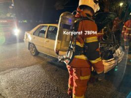 Proton Iswara terbakar dalam perjalanan ke hospital