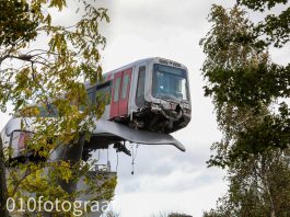 Kereta api terlajak landasan diselamatkan oleh replika ekor ikan paus
